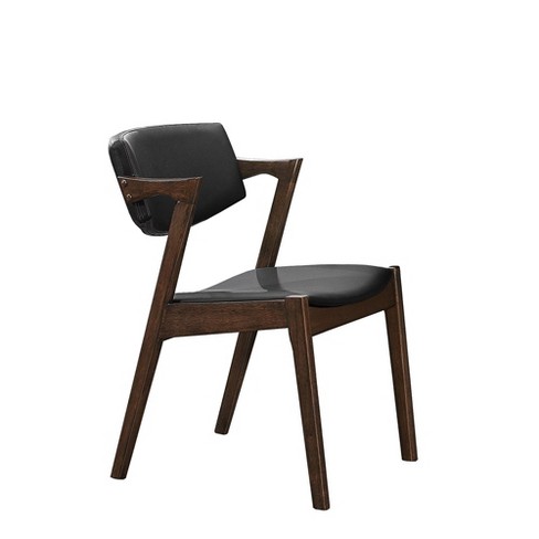 Set Of 2 Wood Leather Mid Century Modern Side Chair Dark Brown Black Benzara Target
